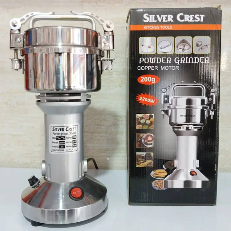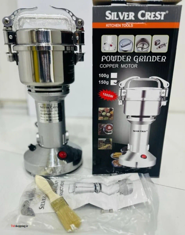 . آسیاب صنعتی سیلور کرست مدل SC-250 با ظرفیت 150 گرم و توان 1000 وات یک آسیاب خانگی و صنعتی پرقدرت است که حتی سنگ را برای شما آسیاب می کند. این آسیاب برقی بسیار با کیفیت پرقدرت و کم مصرف برای خرد کردن ادویه جات و قهوه است. با این دستگاه شما به راحتی می توانید موادی مانند: هل، دارچین، فلفل، قهوه، گندم، برنج، جو و… را به سرعت پودر نمایید. جنس بدنه آسیاب برقی سیلورکرست ترکیبی از استیل و چدن ضدزنگ می باشد. آسیاب صنعتی سیلور کرست مدل SC-250 دارای تیغه 4 پره فولادی ضد زنگ، 1 عدد زغال اضافه، 1عدد تیغه اضافه، درب واشر دار، درب کلیپسی باضریب ایمنی بسیار بالا، فیوز اطمینان، فرچه تمیز کننده مخزن، پایه های ضد لغزش، قدرت دور موتور است.
