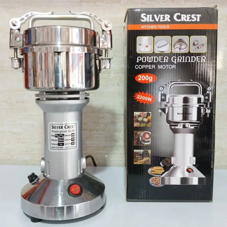 . آسیاب صنعتی سیلور کرست مدل SC-250 با ظرفیت 150 گرم و توان 1000 وات یک آسیاب خانگی و صنعتی پرقدرت است که حتی سنگ را برای شما آسیاب می کند. این آسیاب برقی بسیار با کیفیت پرقدرت و کم مصرف برای خرد کردن ادویه جات و قهوه است. با این دستگاه شما به راحتی می توانید موادی مانند: هل، دارچین، فلفل، قهوه، گندم، برنج، جو و… را به سرعت پودر نمایید. جنس بدنه آسیاب برقی سیلورکرست ترکیبی از استیل و چدن ضدزنگ می باشد. آسیاب صنعتی سیلور کرست مدل SC-250 دارای تیغه 4 پره فولادی ضد زنگ، 1 عدد زغال اضافه، 1عدد تیغه اضافه، درب واشر دار، درب کلیپسی باضریب ایمنی بسیار بالا، فیوز اطمینان، فرچه تمیز کننده مخزن، پایه های ضد لغزش، قدرت دور موتور است.