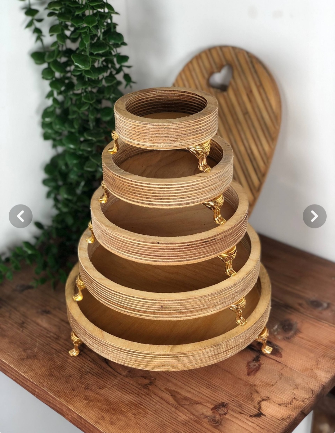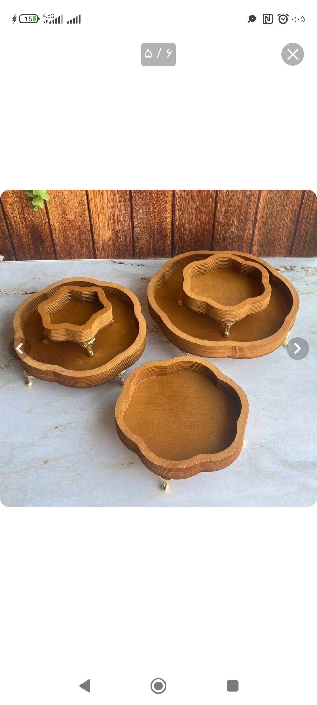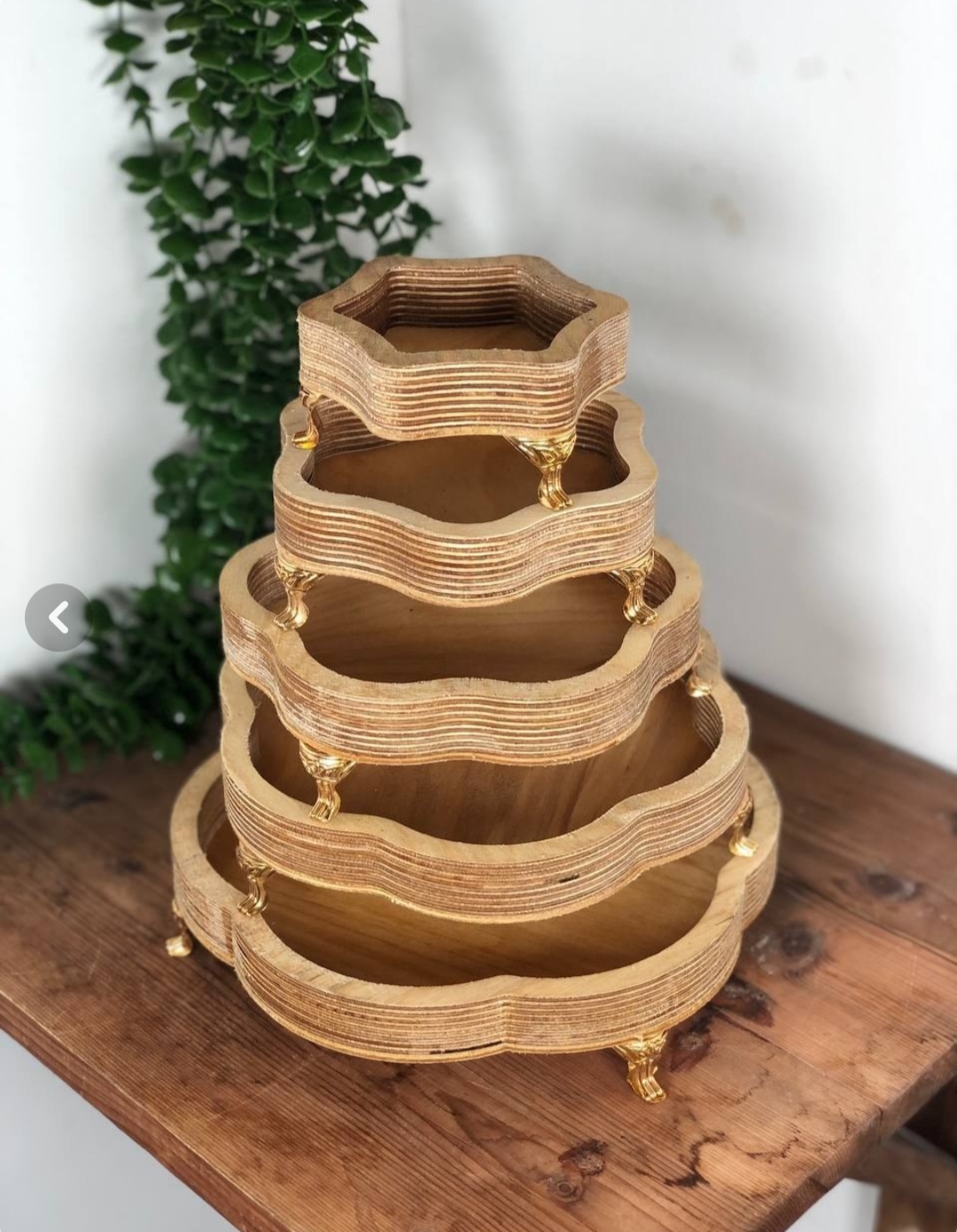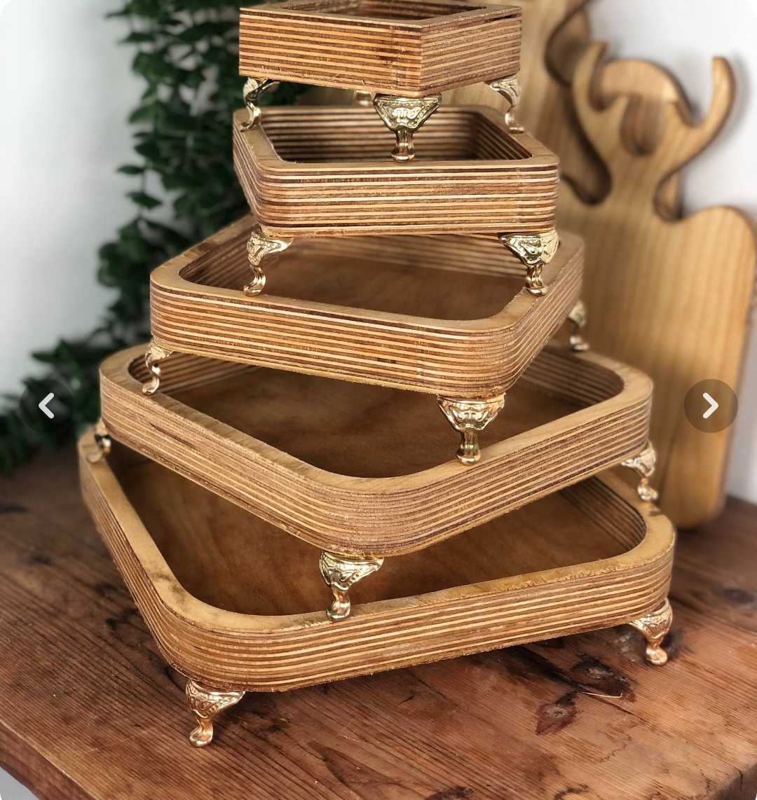 ست چوبی 5 تکه پایه دار خیلی سایز بزرگ نیست مناسب تنقلات و پذیرایی های دوستانه و دورهمی رنگش دو درجه روشن تر